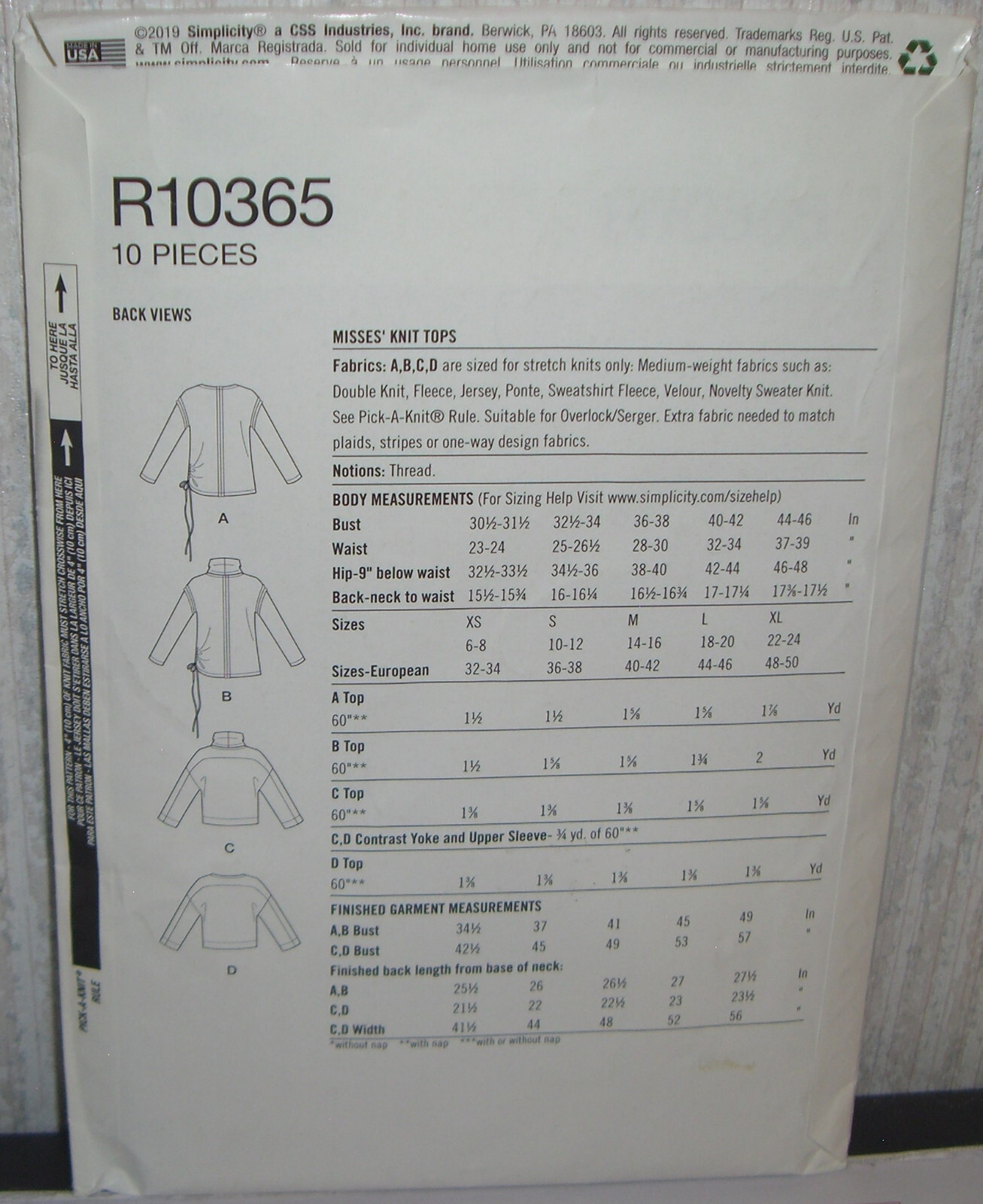 Simplicity Misses Top Sewing Pattern Kit Code S9469 Sizes 6 8 10 12 14 Multicolor